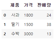 df_1 = pd.DataFrame({'제품' : ['사과', '딸기', '수박'],