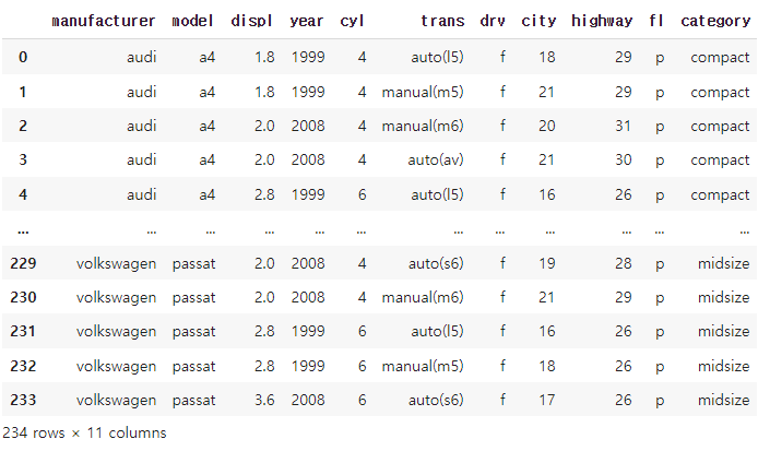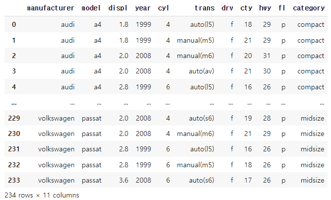 Q2 복사본 데이터를 이용해 cty는 city로, hwy는 highway로 수정