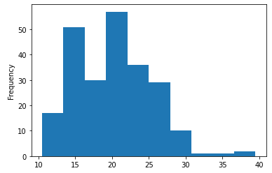 mpg['total'] = (mpg['cty'] + mpg['hwy']) / 2