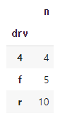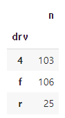 mpg.groupby('drv').agg(n = ('drv', 'count'))