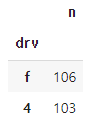 mpg['drv'].value_counts().to_frame('n').rename_axis('drv').query('n > 100')