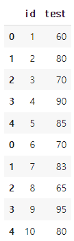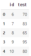 test2 = pd.DataFrame({'id' : [1, 2, 3, 4, 5],