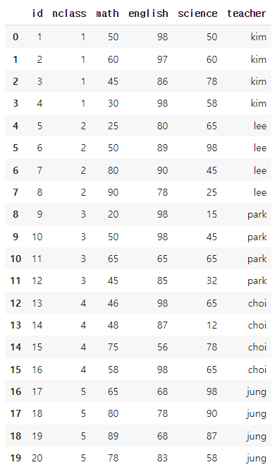 'teacher' : ['kim', 'lee', 'park', 'choi', 'jung']})