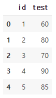 test1 = pd.DataFrame({'id' : [1, 2, 3, 4, 5],