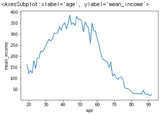 sns.lineplot(data = age_income, x = 'age', y = 'mean_income')