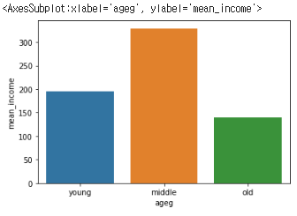 sns.barplot(data = ageg_income, x = 'ageg', y = 'mean_income',