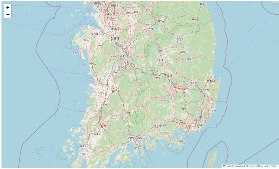 folium.Map(location = [35.95, 127.7], # 지도 중심 좌표