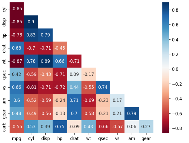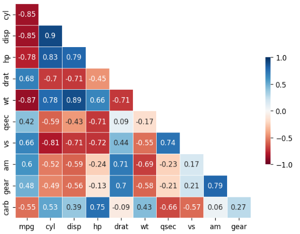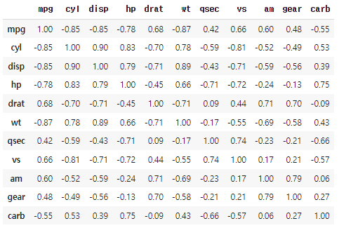 car_cor = mtcars.corr() # 상관행렬 만들기