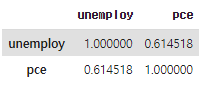 stats.pearsonr(economics['unemploy'], economics['pce'])