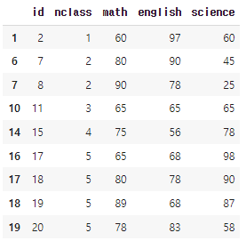 조건을 충족하는 행 추출 방법 비교 (출력 결과 같음)