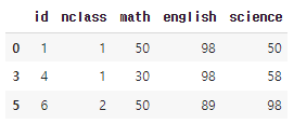 df.loc[df['nclass'] == 1, ['math', 'english']]