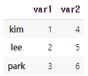 df.loc['lee', 'var1'] # 행, 열 모두 문자열로 추출