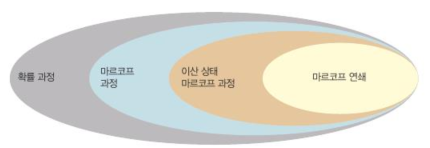 - 마르코프 과정(Markov Process): 현상태에만 의존하는 마르코프 성질이 있는 확률 과정