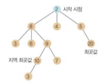 - 현상태를 바탕으로 연결된 이웃 상태만을 고려하므로 지역 탐색(Local Search)