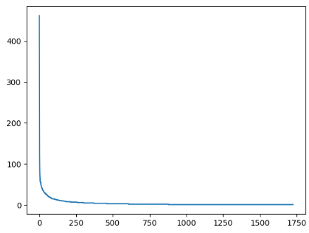 w = [alice_word_count[key] for key in sorted_word_count] #정렬된 단어 리스트에 대해 빈도수를 가져와서 리스트 생성