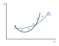 첫번째 곡선: 과대적합 (분산이 크다: high variance)