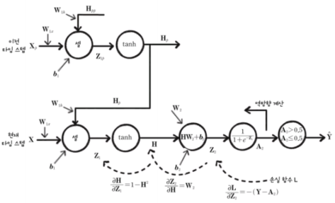 은닉층의 출력이 다시 은닉층의 입력으로 사용 됨