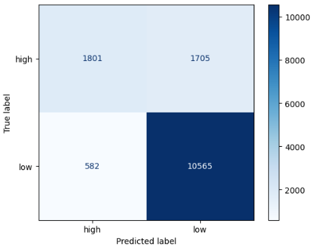 display_labels = ('high', 'low')) # 타겟 변수 클래스명