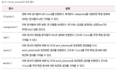print('#samples of file ids:', movie_reviews.fileids()[:10]) #id를 10개까지만 출력