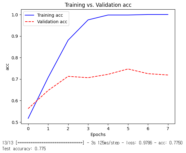 plot_results(history, 'acc')