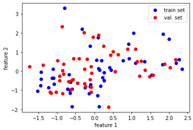 1. 원본 훈련 세트와 검증 세트로 산점도 그리기